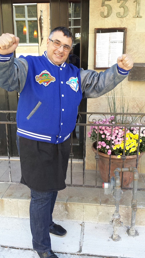 LET’S GO BLUE JAYS: Corktown business owner Giuseppe Pelligra, proprietor of the famed Fusilli Ristorante, got into the playoff spirit last week as the Toronto Blue Jays clinched their first division title in 22 years. Swing by his restaurant at 531 Queen East for some pre-game pasta!