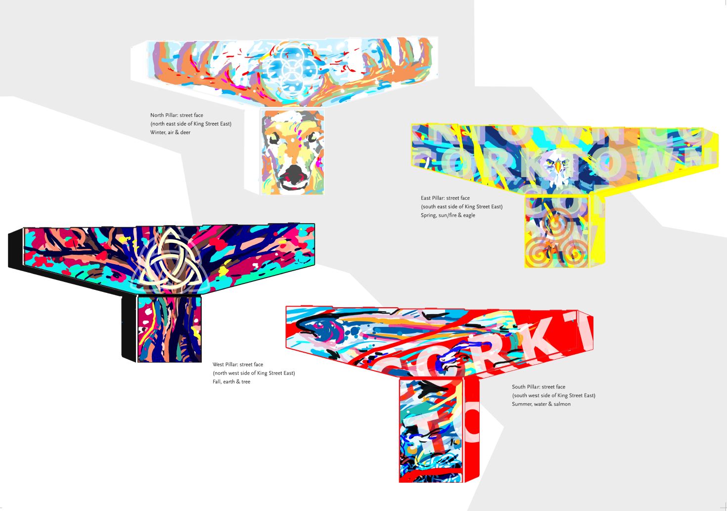 If you want a closer look at the mural designs proposed for the pillars, head on over to Tandem Coffee at 368 King East where the designs are displayed.