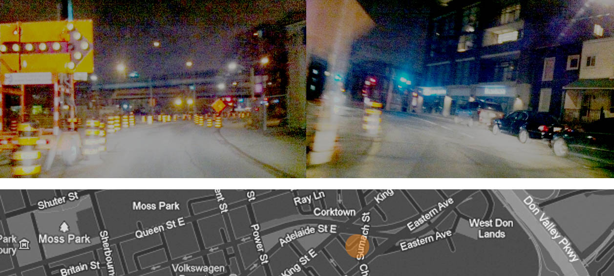 CONSTRUCTION HAZE: A photo collage looking north on Sumach Street from Eastern Avenue. Construction work continues. Photo by Sandra Iskandar.